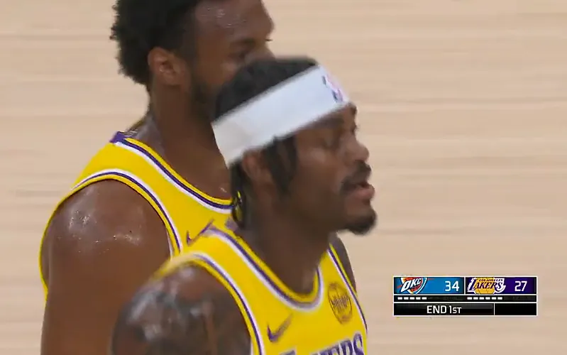 第一节比赛中,湖人27-34落后雷霆7分。